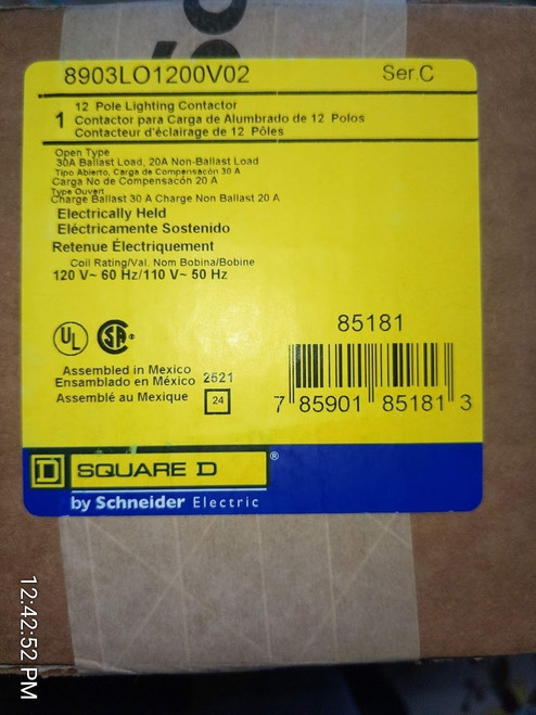 Square D 8903lo1200v02 12-p 30a 120vac Contactor, Blind Shipping Available.